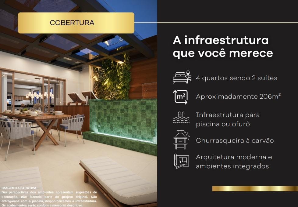 Todos os apartamentos com varanda gourmet; churrasqueira á carvão;