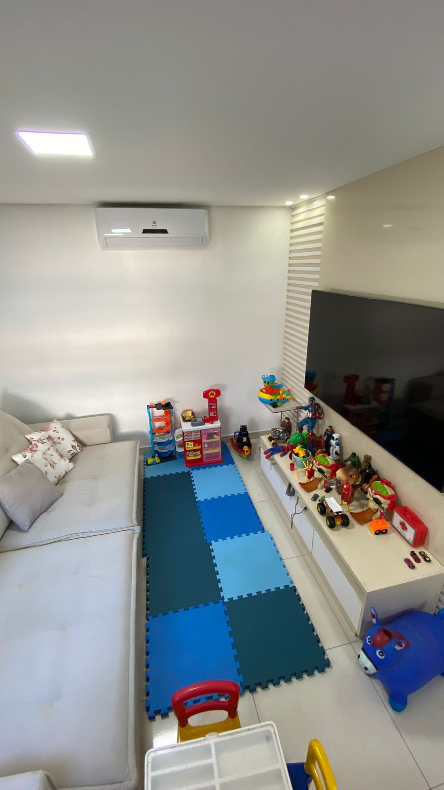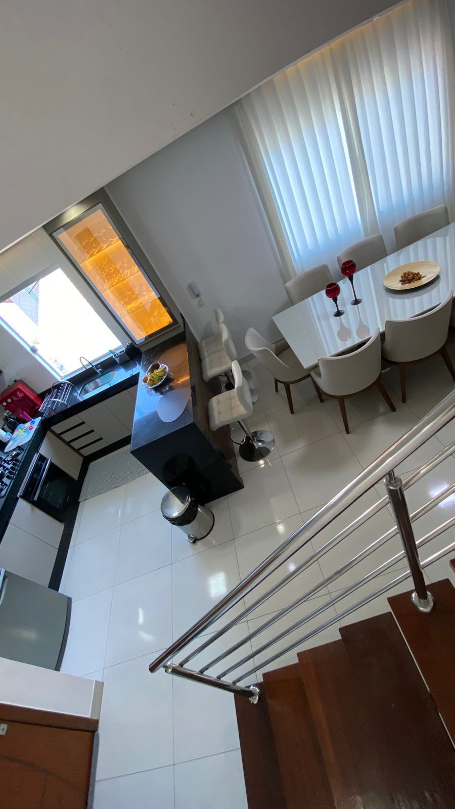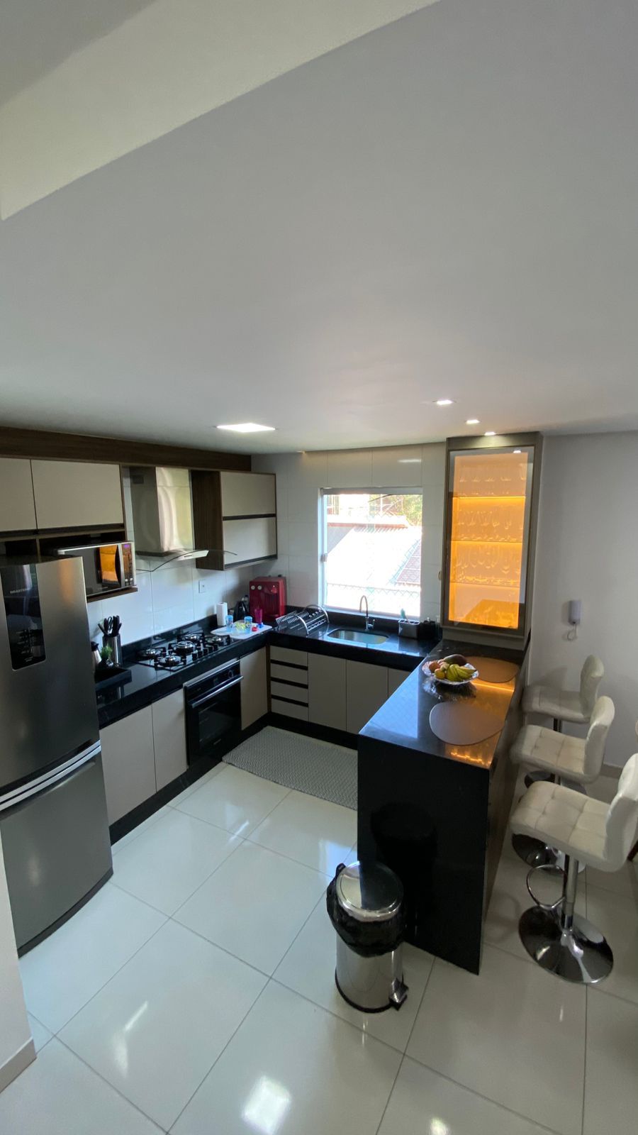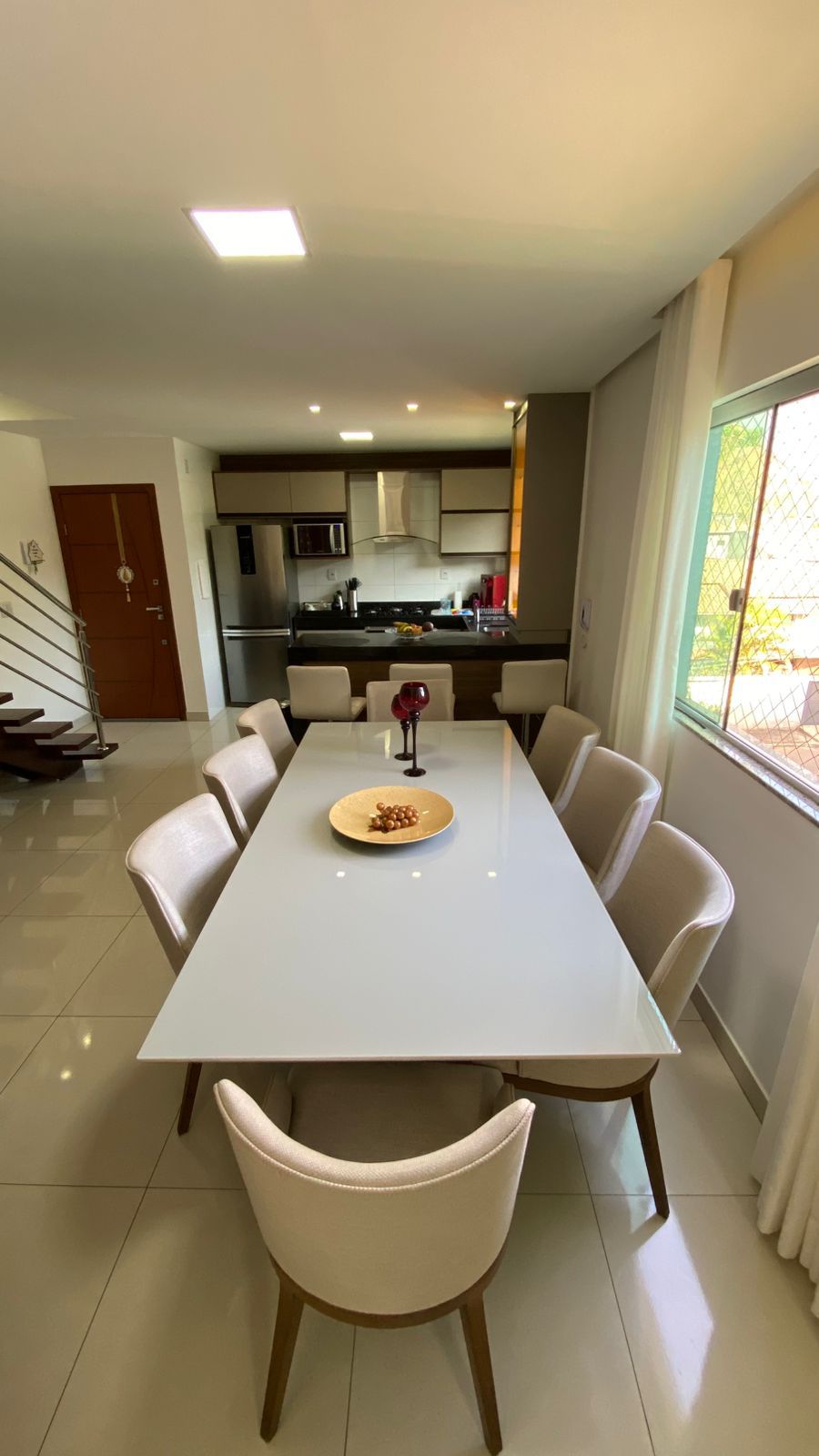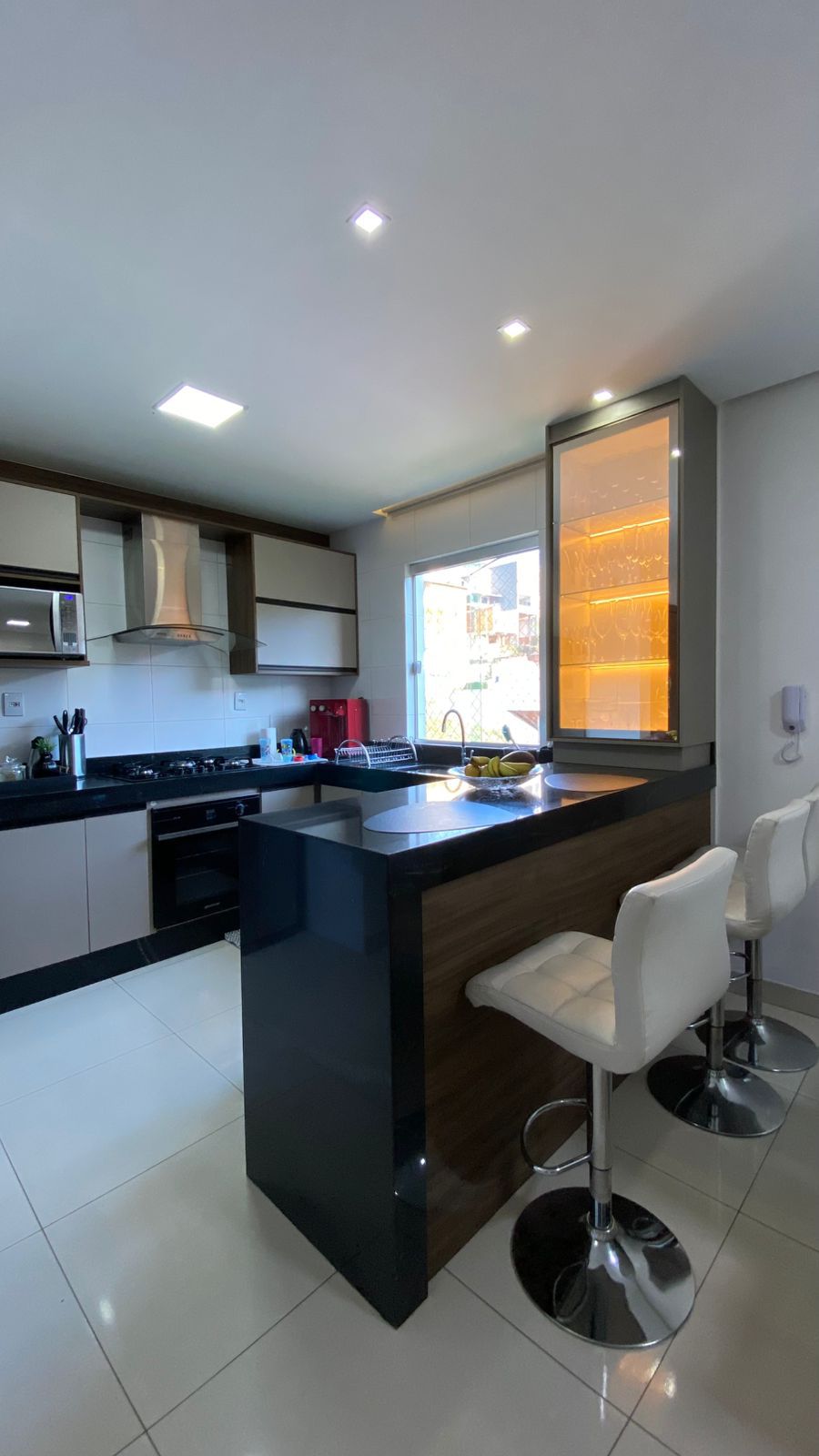 • Sala ampla e climatizada, com 02 ambientes integrados à cozinha moderna