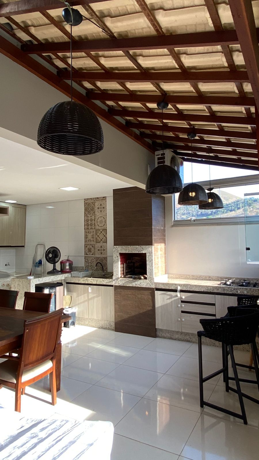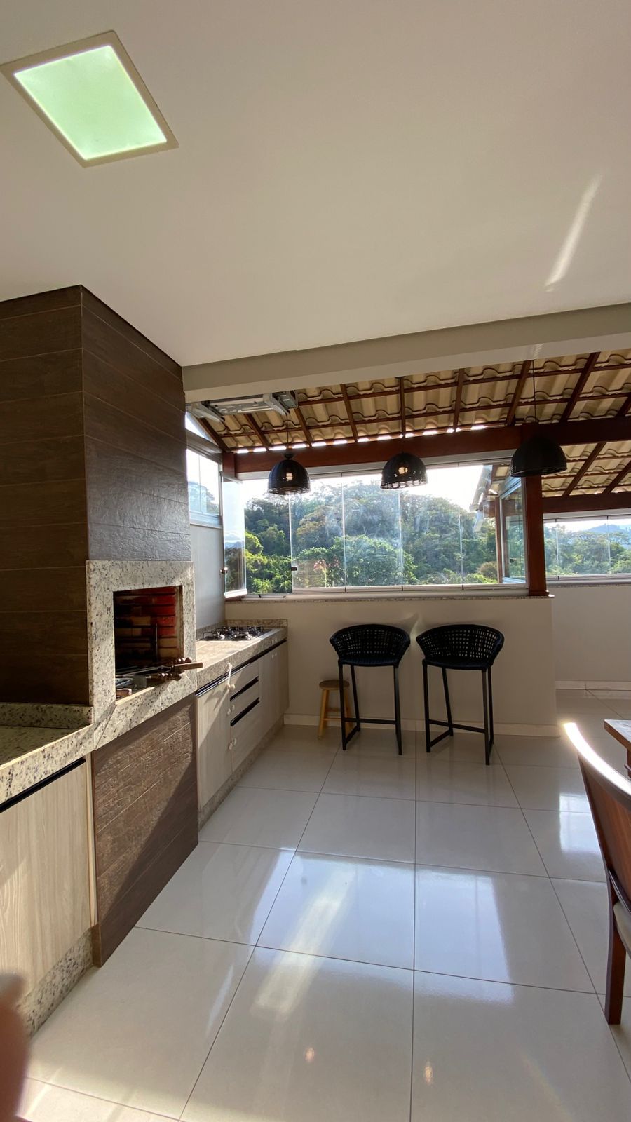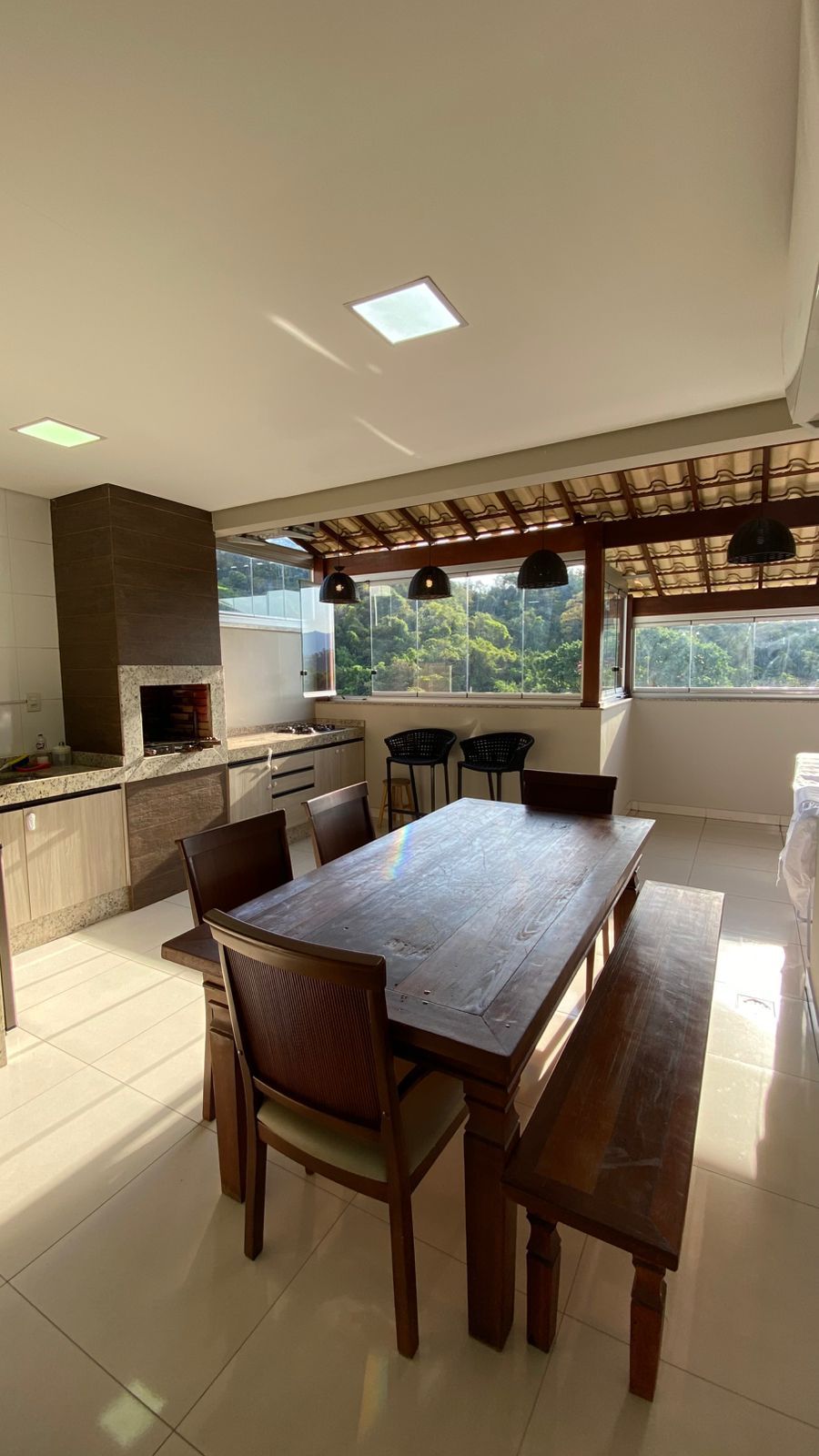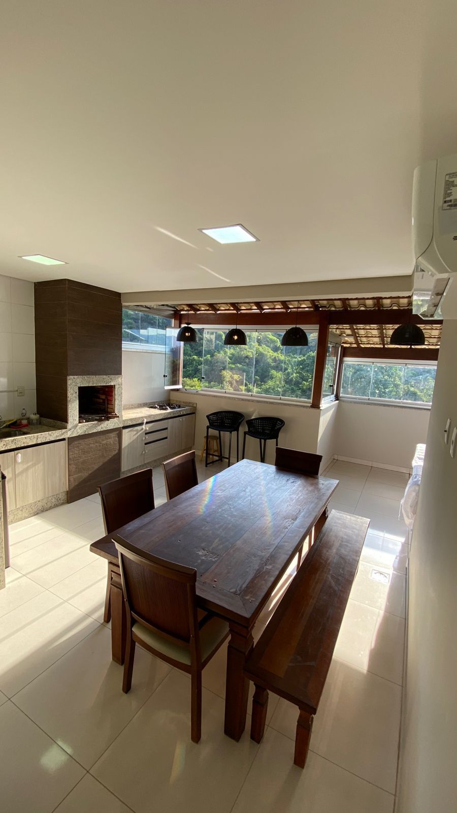 • Espaço gourmet climatizado, com churrasqueira a carvão e chuveirão — ideal para receber amigos e família