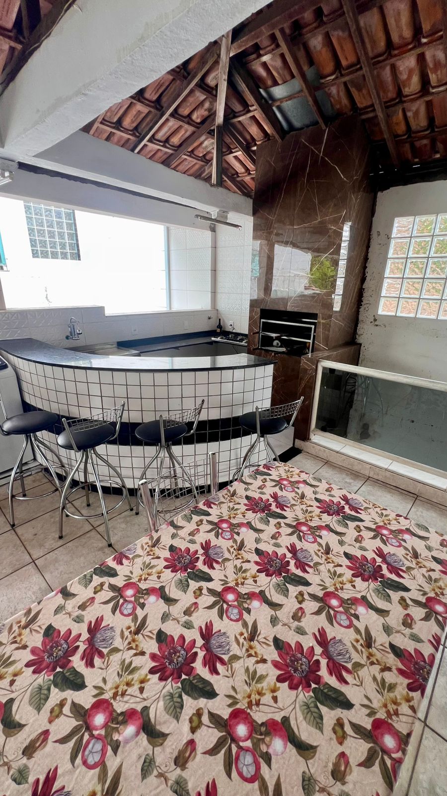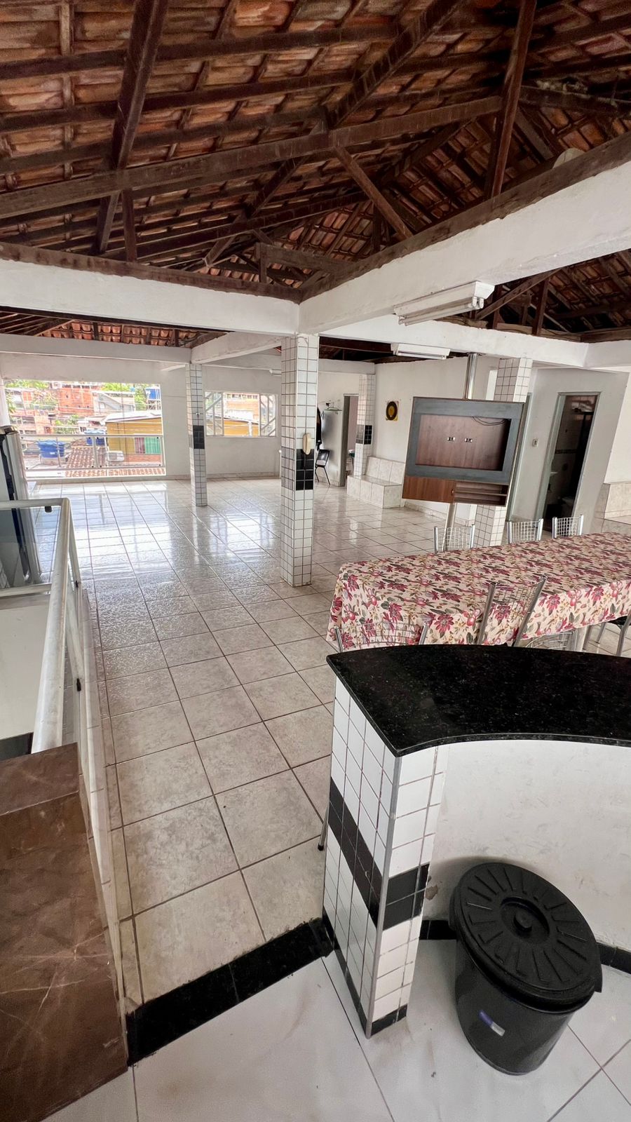✔️Terraço coberto de aproximadamente 150 m2 com churrasqueira , banheiro e 2 quartos .