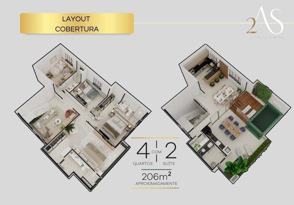 2 coberturas, á partir de 203m2;